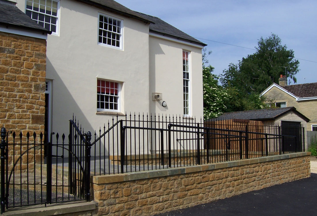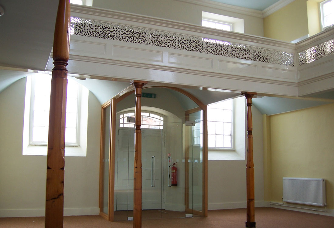 Brear Associates specified extensive repairs to replace a strip and reroof the chapel roof, extensive refurbishment of sash windows, damp proofing works utilising lime render , replacement of a timber ground floor and formation of a new two storey extension to provide inside toilets, a new kitchen, office for pastor and a small meeting room. Full replacement of M&E services was also incorporated including a fire alarm and detection system. Externally a well was found which had to be capped. At the front of the site the terrace was extended with new purpose made railings set into a new stone boundary wall.